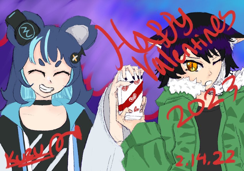 #Urukart #UrufuVCard Pretty last minute, decided to do a color sketch of myself handing chocolate to Uruka. I don't think it was the best idea, but I procrastinated too long so it was my only idea. Happy Valentine's Day! I wish everyone a good day today!
