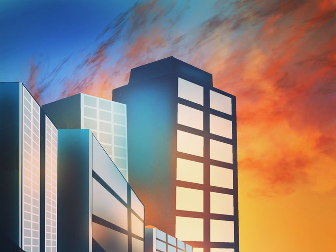 ビル練習🏙 #イラスト #ビル #夕焼け空