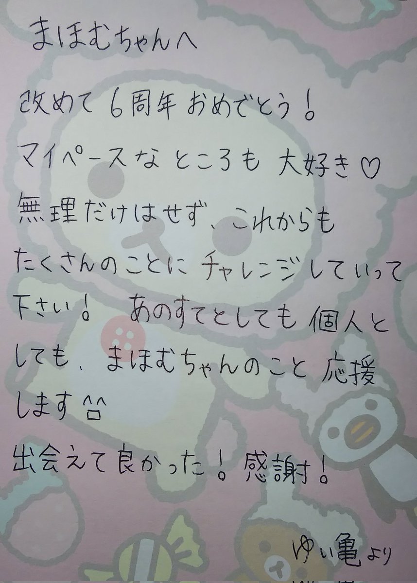 Dear まほむちゃん @MahoMu_M 6周年ということで、 ファンアート描いてみました❣️ 下手なことは承知の上 。゚( ゚இωஇ゚)゚。 でも、描きたかった❣️ あと、直筆お手紙も書いてみました ε*(*>ᴗ<*)*з まほむちゃんに届きますように🕊