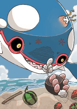 #ポケモンイラスト 煽るナマコブシと怒るカイオーガとただそこにあるスイカ