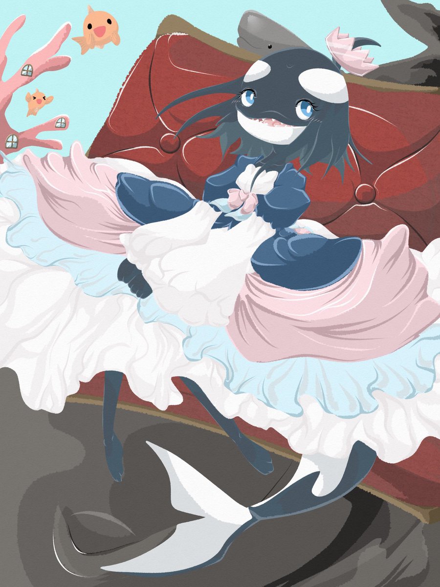 #一次創作 #イラスト シャチのお姫様の成長した姿を描きました! 現地点での技術を全てつぎ込んだ力作です💪( 'ω' 💪)