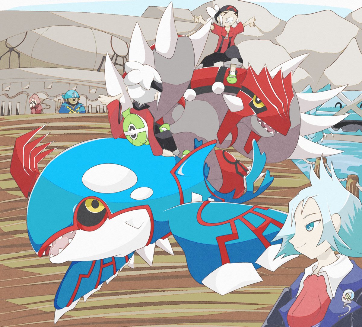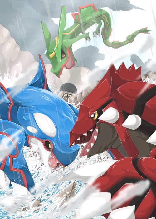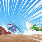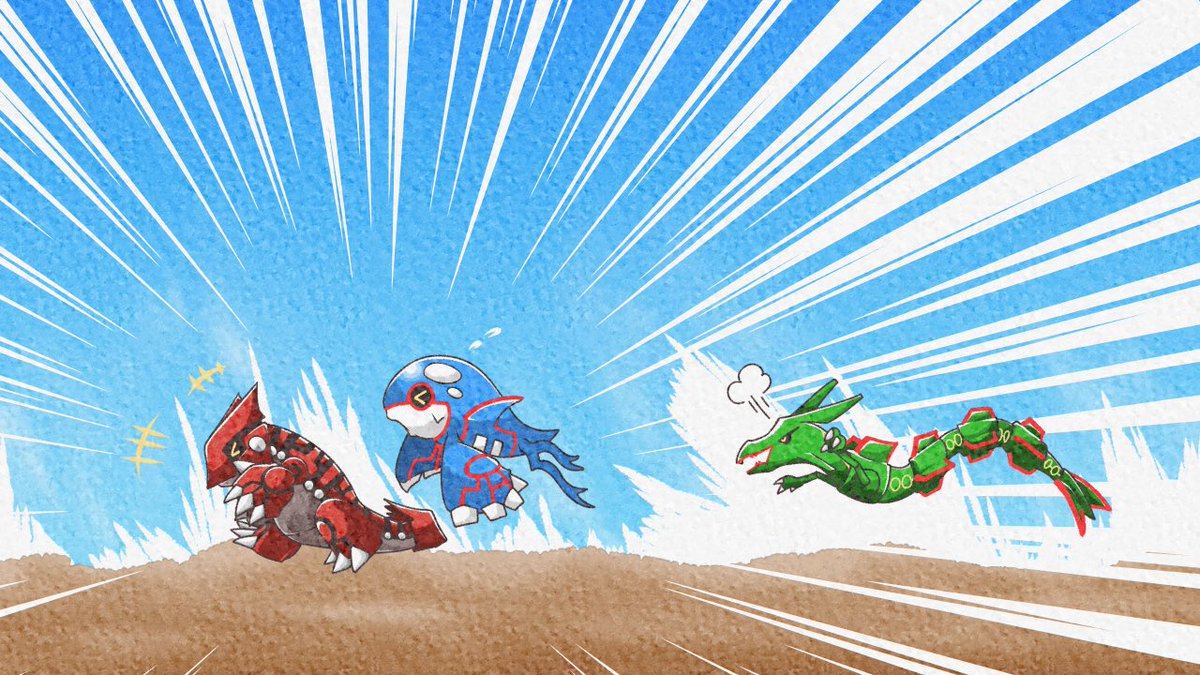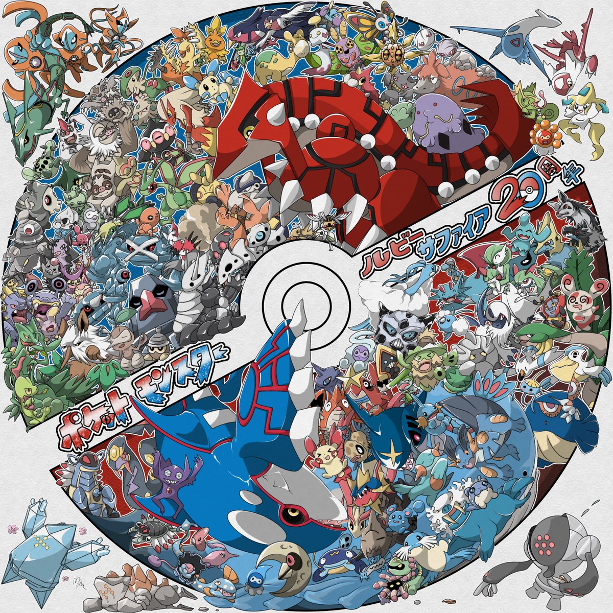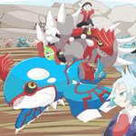 ポケットモンスター ルビー・サファイアが発売されてから20年なので集合絵を描きました!! ホウエン地方は1番思い入れのある地方なので無事に描き終えてほっとしました(›´-`‹ ) カイオーガとグラードンは一生の推し #RS20周年 #Pokemon