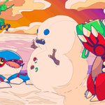 45 245 #ポケモンイラスト 煽るナマコブシと怒るカイオーガとただそこにあるスイカ 23/07/28 16:52