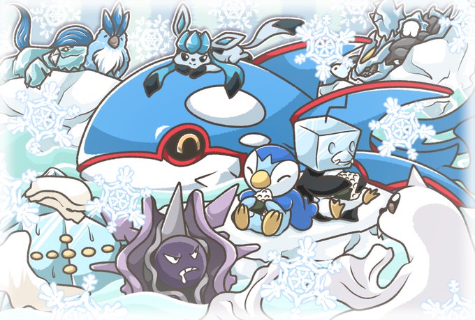 カイオーガとこおりタイプのみんな🧊⛄️❄️ #ポケモンイラスト #Pokemon