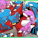 #今月描いた絵を晒そう 花子くんの茜葵とグラカイのクロスオーバーとカイオーガとカイオーガとドタバタグラカイレック