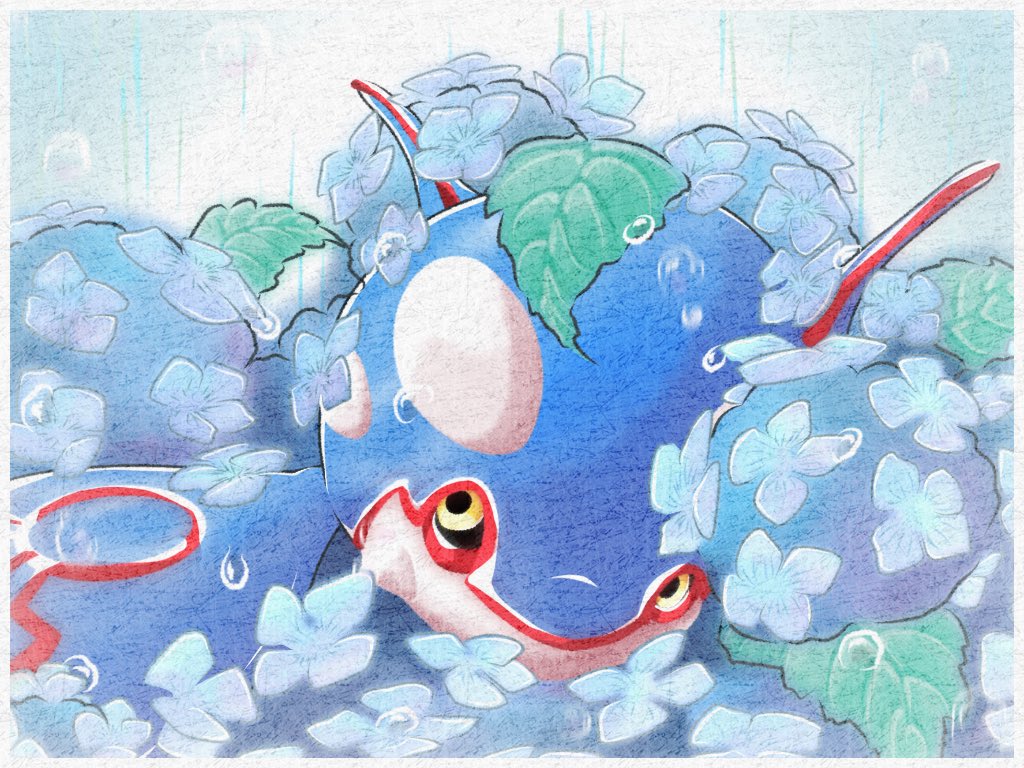 梅雨と紫陽花とカイオーガ☔️ #ポケモンイラスト