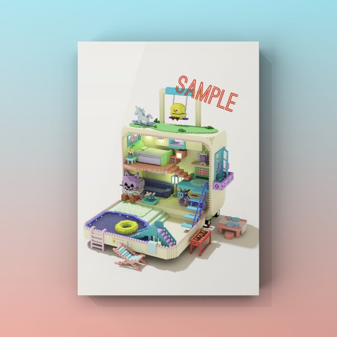 Leony, a well-slept Scottish Fold, lives with his precious companion Piyony. The heartwarming scenes of their life are expressed in voxel art. opensea.io/collection/vox… #JPNNFT #voxelart