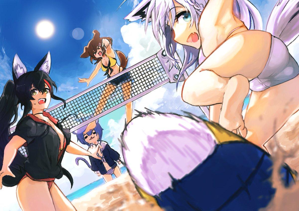 『ビーチバレーじゃーい!』 #ホロライブサマー #絵フブキ #みおーん絵 #絵かゆ #できたてころね