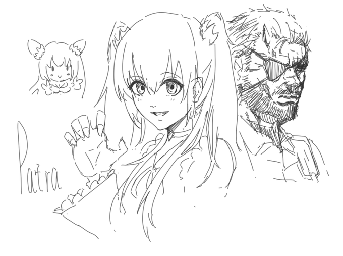 パトラさんからお仕事もらえたらいいなと思いながら描く落書き(左)と、「お前はやりすぎたのだ!」って言ってたころのパトラさん(右)です。 #パトラのアトリエ