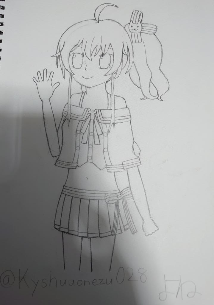 まつりちゃん描いた! 顔を大きく描いてみたけどアホ毛が… #祭絵