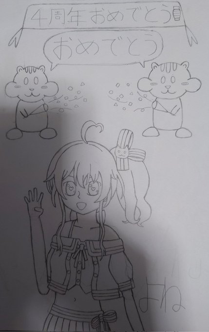 改めて絵をツイート! まつりちゃん4周年おめでとう🎉🎂 まつりすにお祝いされてハッピーなまつりちゃん #祭絵