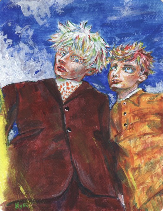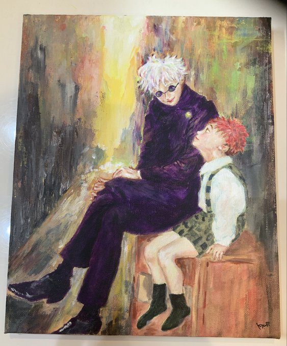 12月のイベントに持っていく五悠のアクリル画一つできました! 今までとは違った描き方してみました。面白かったです。でも一枚にかかる時間画半端なく、後一枚でタイムリミットになりそう… #五悠好きさんと繋がりたい #アクリル画 #アナログイラスト #呪術廻戦ファンアート