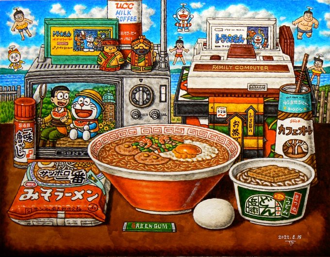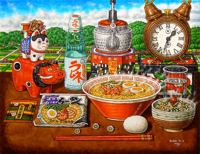 18 187 サッポロ一番塩ラーメンを描きました。 22/09/06 19:13