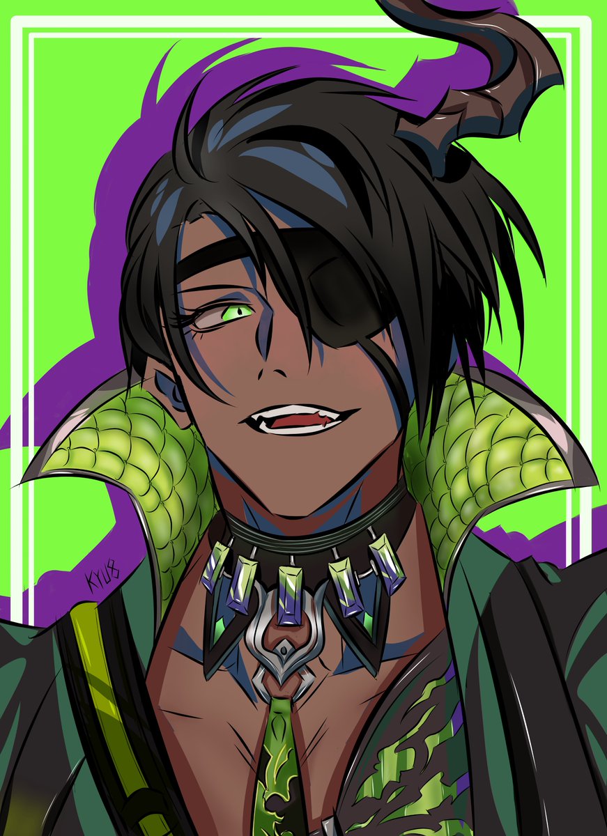 I drew Vox with a ponytail and traditional clothing~ This was way harder than I expected as I had to come up with some of the clothing design myself ;-; #VoxAkuma #Akurylic #NIJISANJI_EN #NIJISANJI #NijisanjiEN #Luxiem #digitalart #digitaldrawing