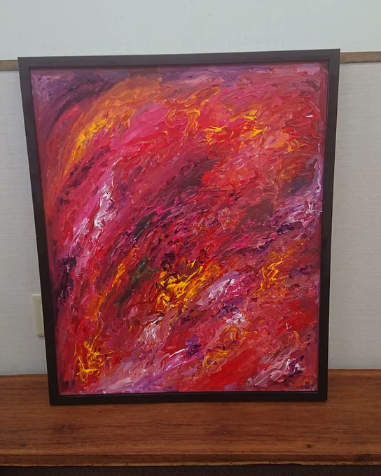 4 32 F20号抽象画アクリル 赤の残景 #イラスト #絵画 少し大きめの抽象画作ってみました❗。 22/08/29 18:09