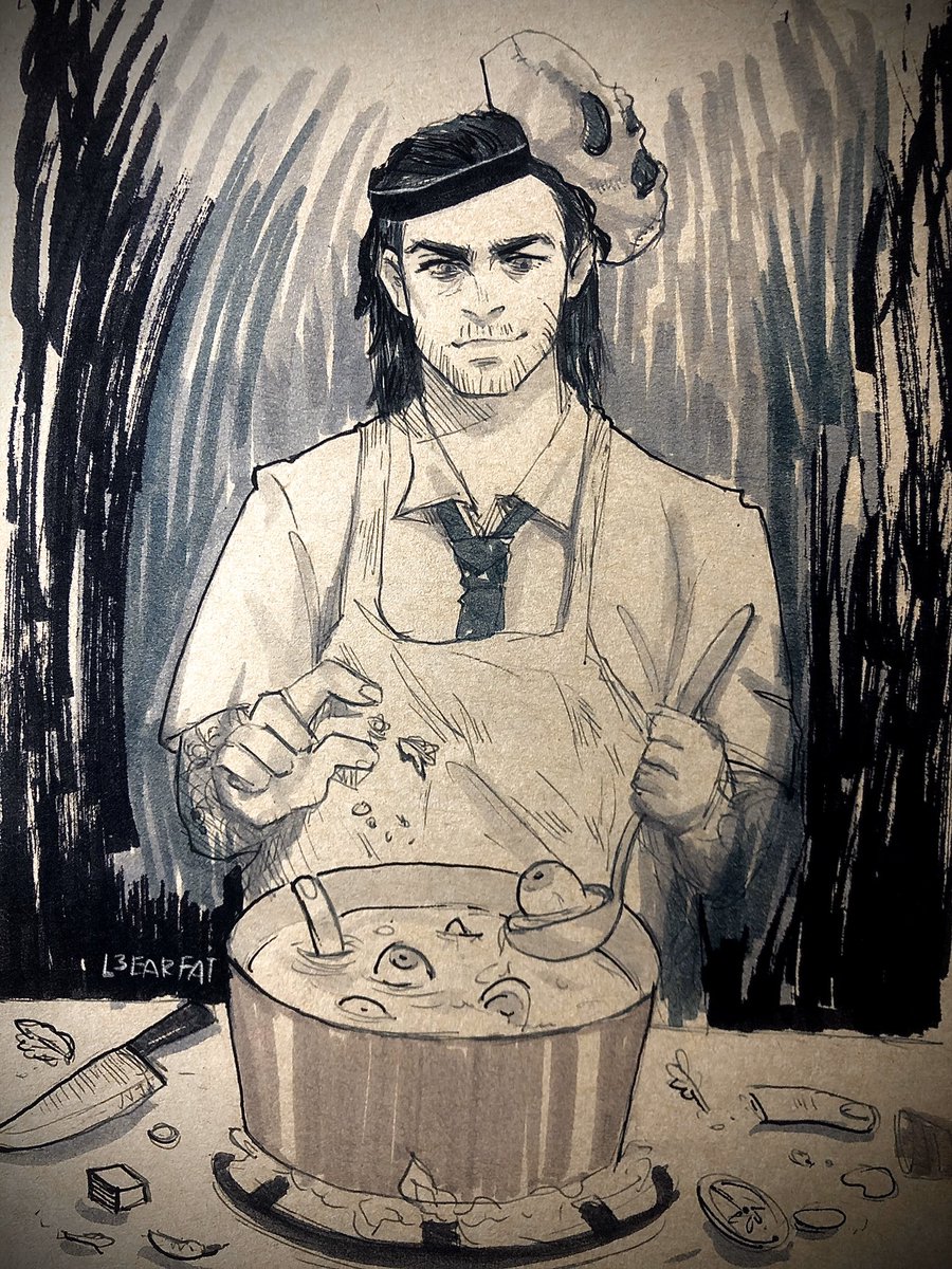 Day 1 โcreepy foodโ ๐ฅ iโve got inspiration from Leather Face ๐ช๐ช @petewentz #Inktober #inktober2019 #doodle