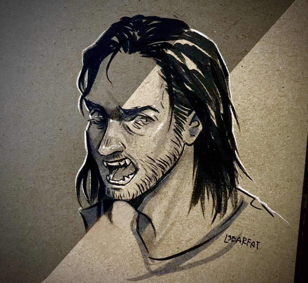Day 4 โFangs โ๐งโโ๏ธ I don't know how to use a brush pen ๐คฆโโ๏ธ @petewentz #Inktober #inktober2019 #doodle