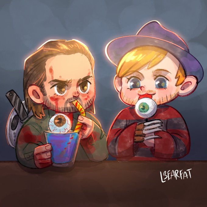 D24 โeyeballs ๐โ Jason!Pete ๐ฅค & Freddy!Patrick ๐ญ @petewentz @PatrickStump #Inktober #inktober2019 #doodle