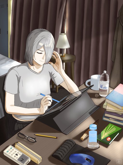 3か月上達法5巡目です。 題名「彼女は絵を描く」です。 #イラスト #3ヵ月上達法