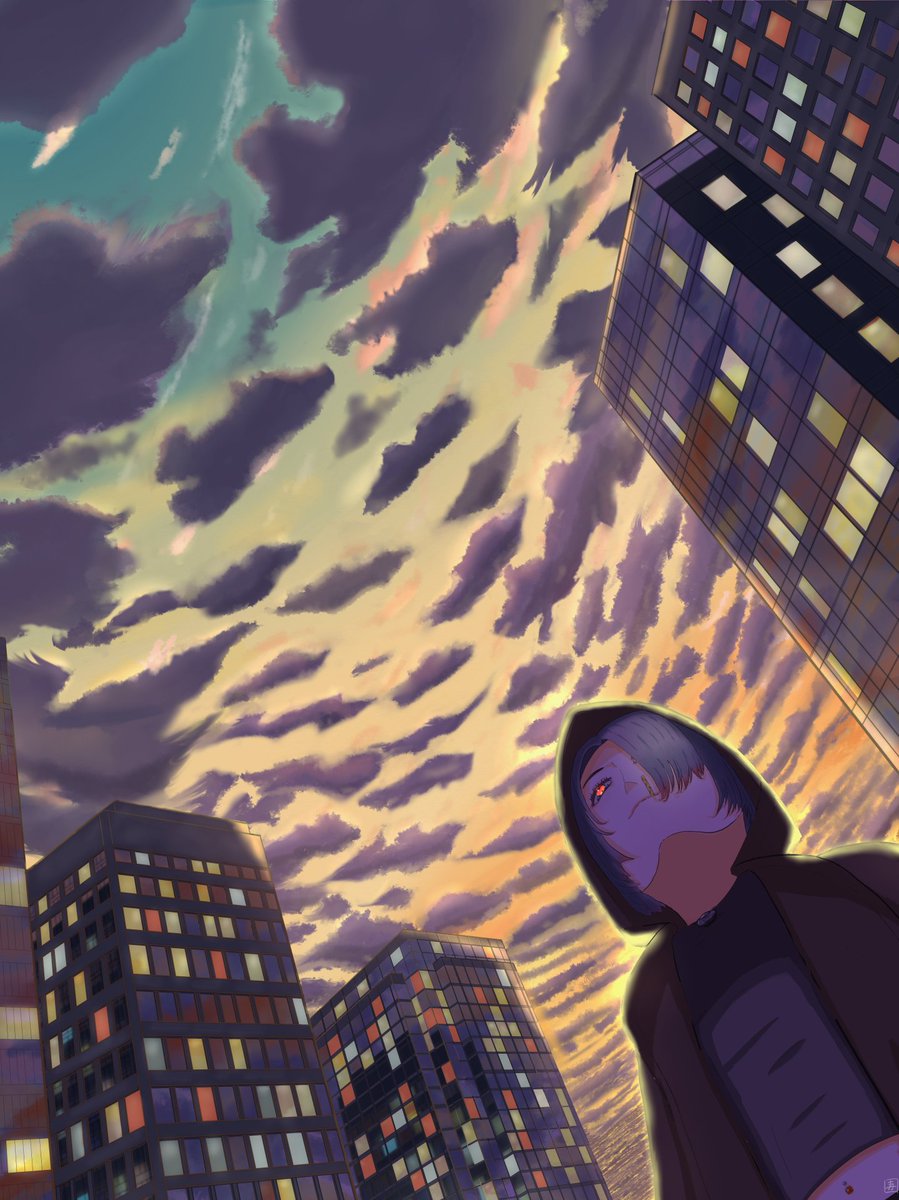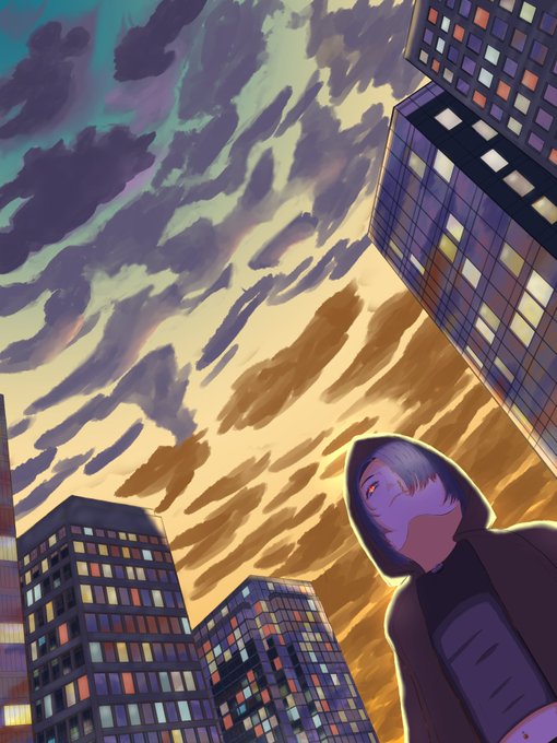 7 97 #イラスト #絵描き 「夕焼けを背に歩く」 途中経過です! 21/09/13 21:48