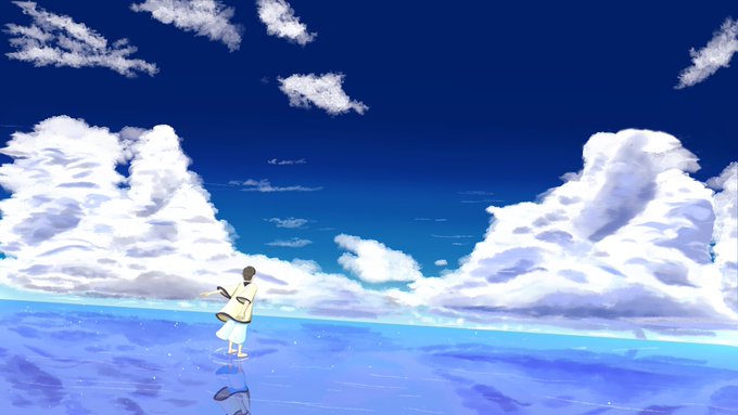 4 43 「空と海と少年」 今回は風景メインで幻想的な雰囲気の世界を描いてみました。 #イラスト #イラスト好きな人と繋がりたい #イラスト練習中 #絵を描く人 #絵描きさんと繋がりたい 21/01/10 14:25