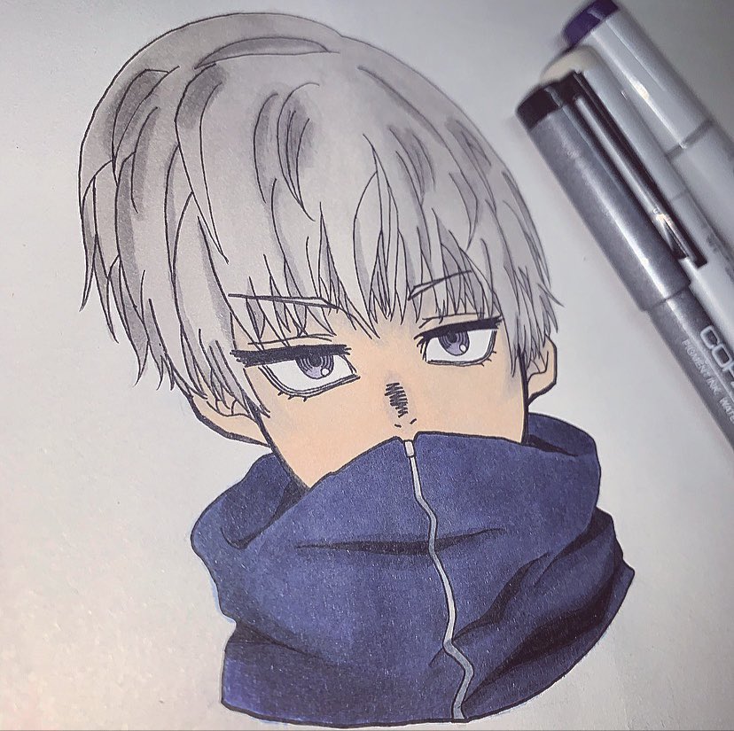 狗巻先輩 完成した! コピック初めて使った中2です笑 #呪術廻戦 #じゅじゅプラス #jujuプラス #狗巻棘 #コピック #中2 #中学生