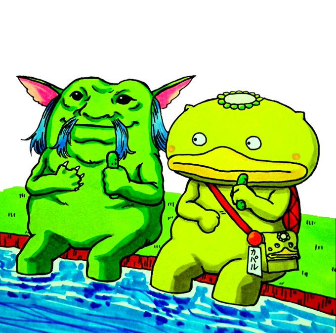 カッパの国際交流→ハッピーバースデートゥーミー→妖怪カパル #今月描いた絵を晒そう