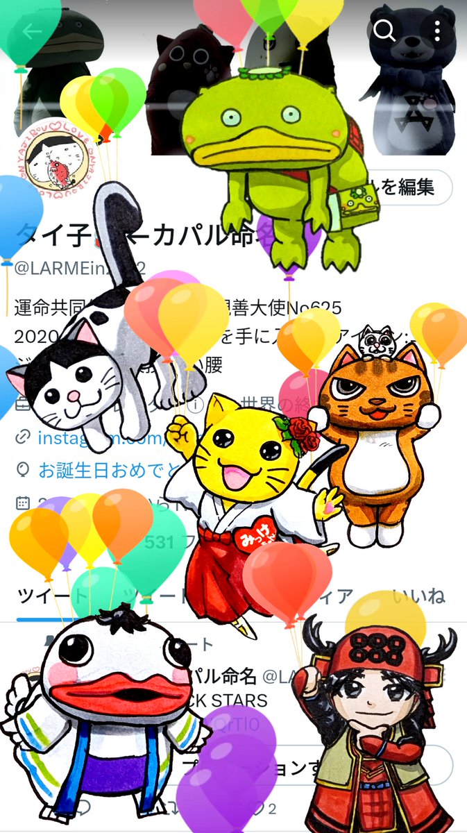0 3 カッパの国際交流→ハッピーバースデートゥーミー→妖怪カパル #今月描いた絵を晒そう 22/06/30 08:50