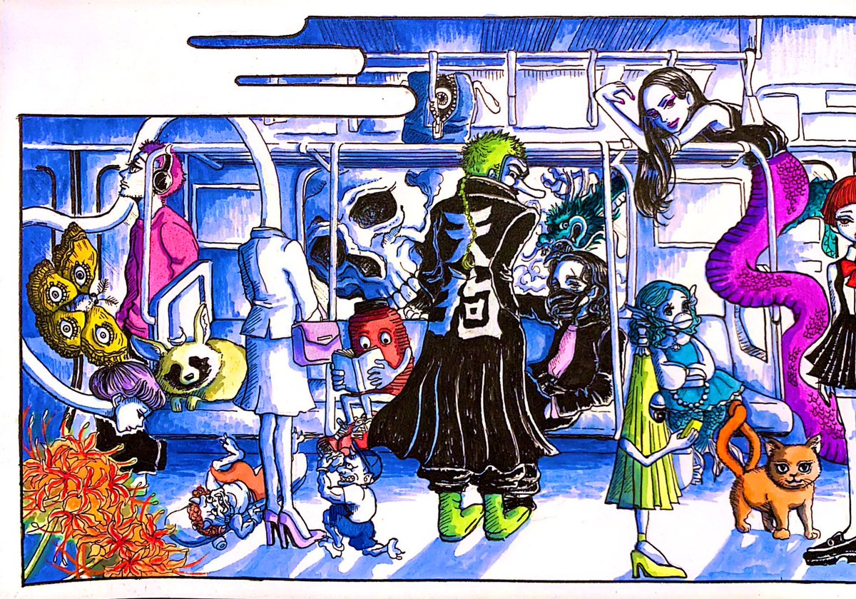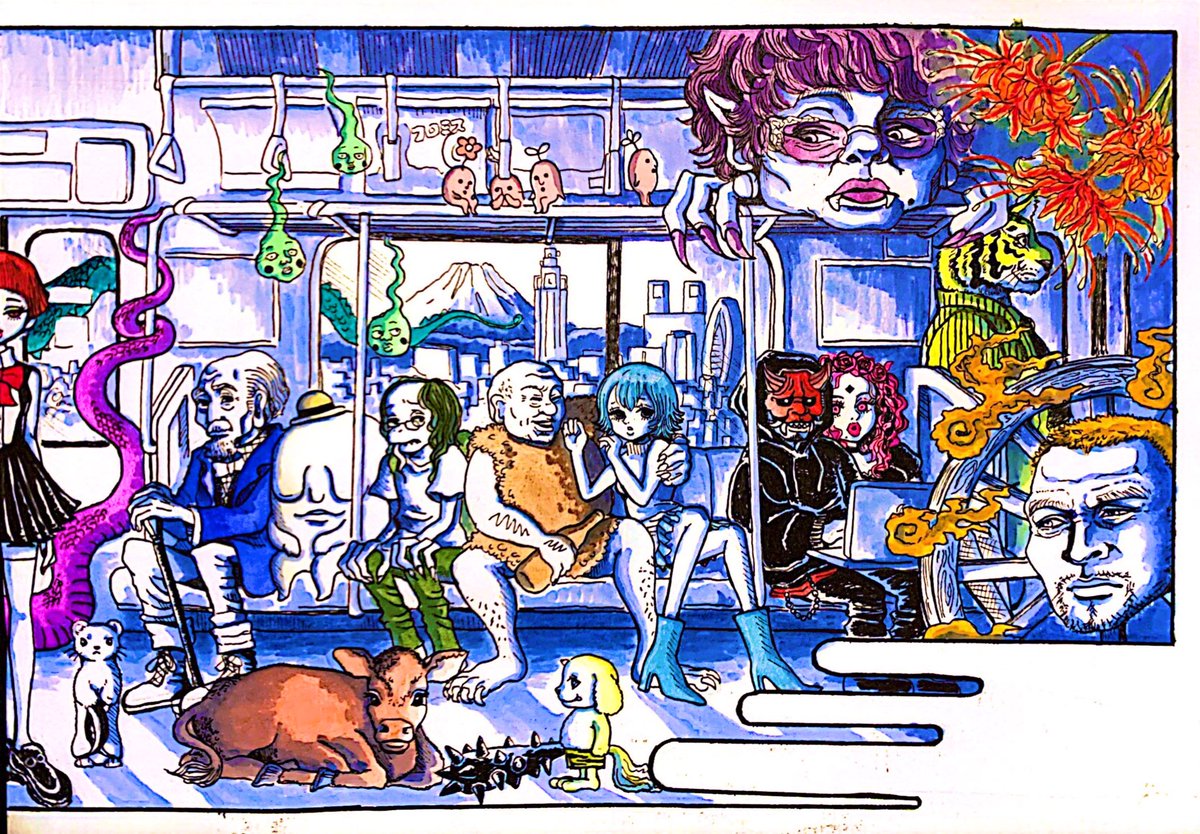 1 5 新宿始発の特急列車『百鬼夜行行き』 #イラスト #ファッション #妖怪 #百鬼夜行 22/09/23 08:45