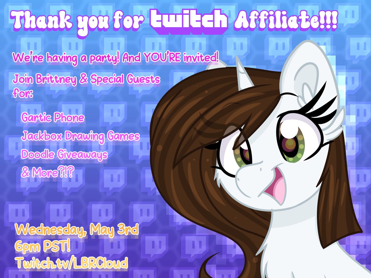 We've reached Affiliate!!! 🥳🎉💞 Join me and some special guests for a party this Wednesday!! ✨ twitch.tv/lbrcloud