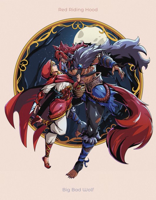 Red Riding Hood that fell for the Big Bad Wolf ❤️💙 I'm finally done even thought its late AAA #FFXIVOCGala #FFXIVOCGala2023 #FFXIVART #Wolyse
