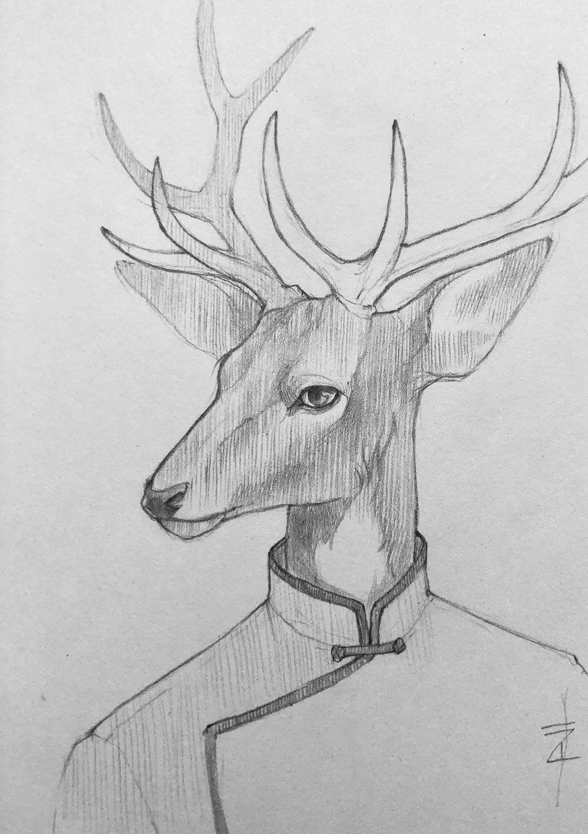 Still searching for the most suitable shape of his antlers. #Beastars #Beastarsfanart #Louis #Rui #ルイ #pencilsketch