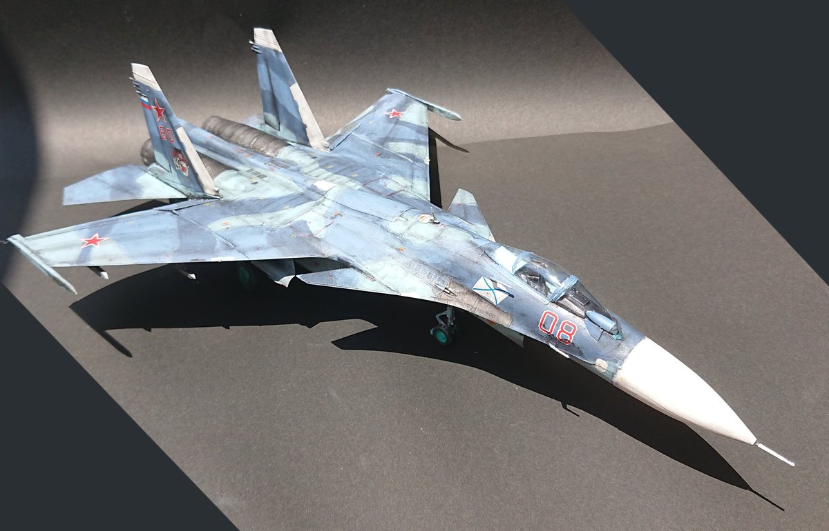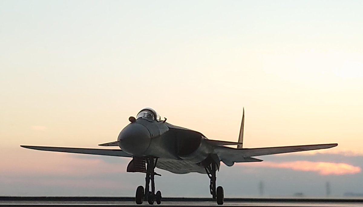 イタレリ 1/72 S-37(Su-47)ベルクト キットはズベズダのOEMです 前進翼機の中でも特に有名な機体ですが、プラモデルでもその異質さは十分に感じられますね ツリーの写真だとより分かり易いのですが、セルジュコフ迷彩の架空の実戦配備型を想定して製作しました #完成ツイート