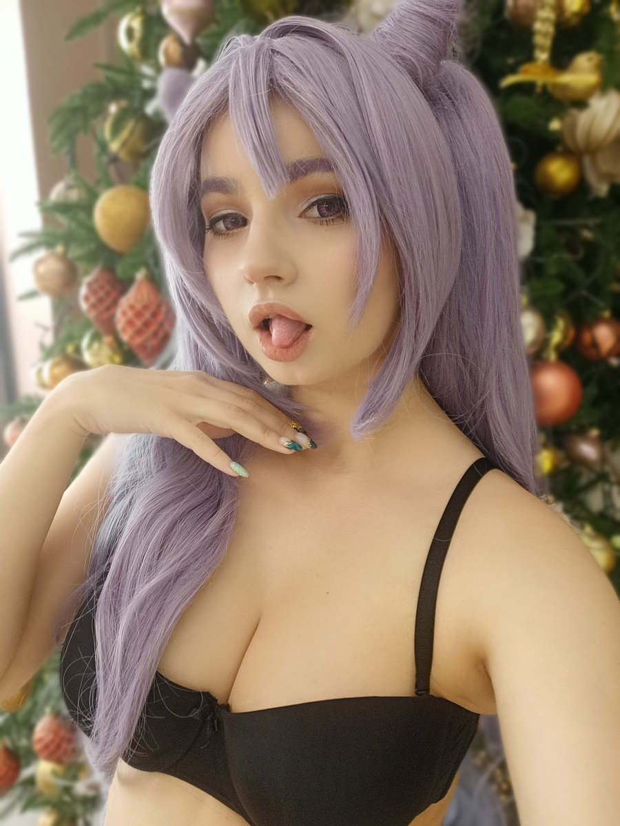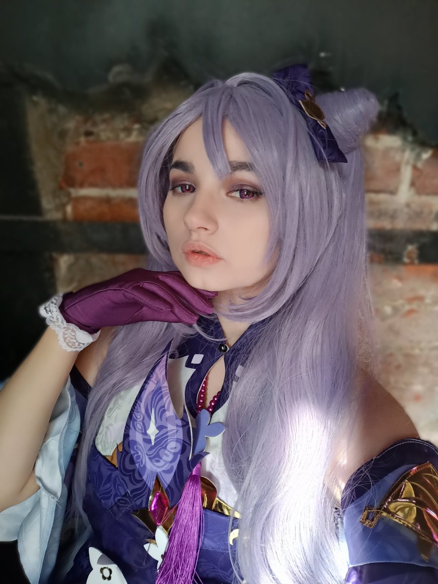 Today is #hornythusday and I look like yammy-peach 🍑🤤 Pls, follow me for support this account 💕✨ #GenshinImapct #genshin #cosplay #keqing #keqinglook #yammygirl #geekgirl