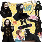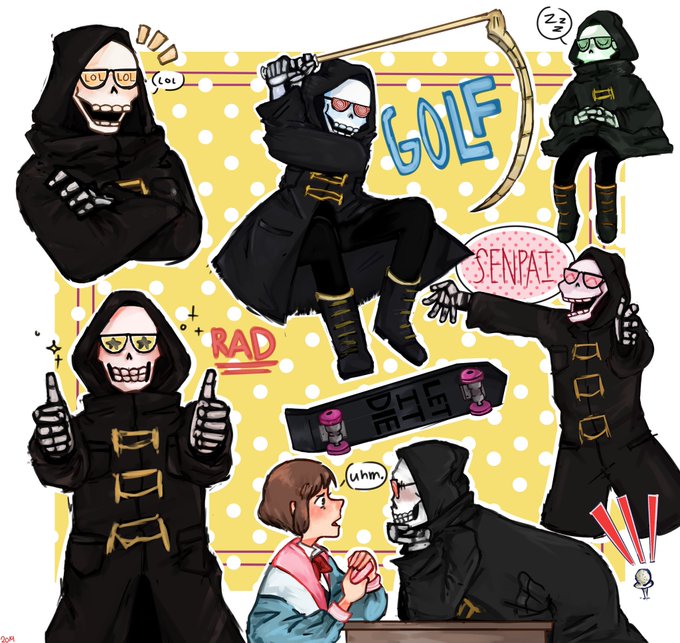 Senpai! It's #FanArtFriday time again! ✌️💀 This time, @Momidshi captures all of my many sides! There's my goofy side, 😜 my golf-y side, ⛳ my sleepy side, 😴 and my shredding side! 🛹 About the only thing they missed is my soul-reaping side! 😱 Heheheh... thanks, senpai!