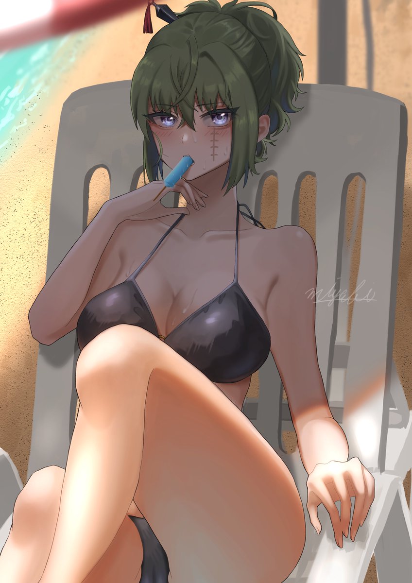 2 6 日焼けした月詠さん☀️ #今年も残りわずかなので今年一番伸びた絵を貼る 22/12/09 17:16