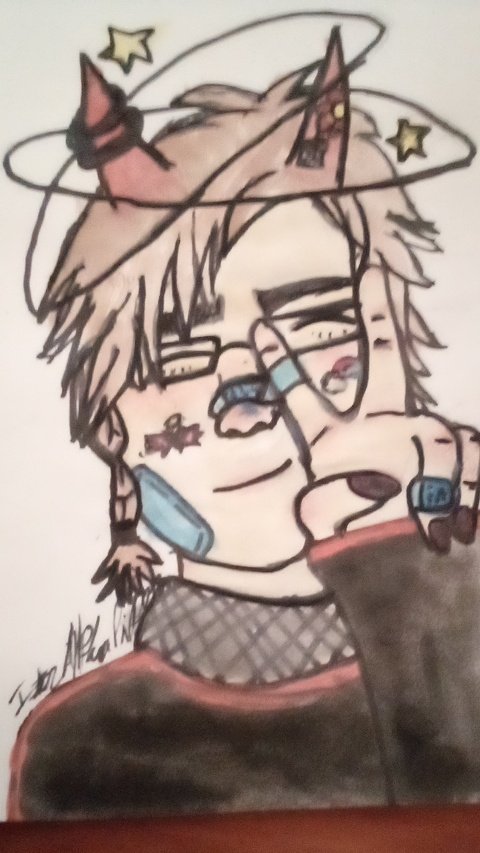 I tried drawing and painting a sticker and bandaid obsessed @BadBoyHalo ! If Bad is seeing this, I HOPE YOU LIKE THE PICTURE!!! :D I really enjoyed making this! #badboyhalofanart #badboyhalo #dsmpfanart #bbhfanart #watercolorpainting