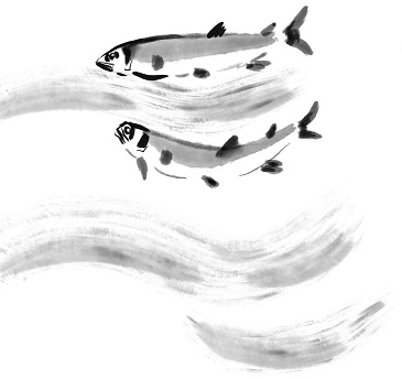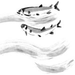 下記動画を見て「鮎」。 youtube.com/watch?v=ff-NaQ… 動画のように掠れるブラシが無くて、波に苦戦。 「ドライブラシ」+「ウォーターブラシ」で表現。 水墨画に近づけるには、Procreateのブラシの作り方を勉強しないとダメかも。 #水墨画 #Procreate #Procreateart #デジタルイラスト #すみする動画
