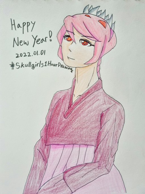 9 50 Happy New Year, folks! #スカルガ版深夜の真剣お絵描き60分一本勝負 #Skullgirls1HourDrawing 22/01/01 22:56
