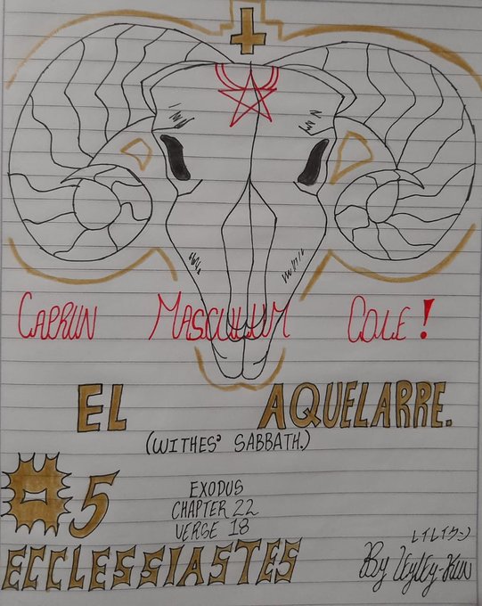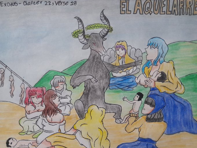 #5 EL AQUELARRE (witches' sabbath) 魔女たちが集まり、歌い、踊る 大きなビリーヤギにお供え物をするのだ そして、その見返りとして権力や富、永遠の命を手に入れるのです ※フランシスコ・デ・ゴヤの絵画「EL AQUELARRE」のファンアート※ #絵描きさんと繋がりたい #イラスト #オリジナル twitter.com/LLK_FOUR_RIB…