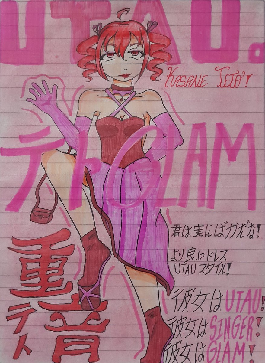 彼女はUTAU! 彼女はSINGER! 彼女はGLAM! 今日のUTAUマガジンは、Kasane teto! テトGLAM 「君は実にばかだな!より良いドレスUTAUスタイル!」 重音テト #イラスト #絵描きさんと繋がりたい #オリジナル #kasaneteto #重音テト #ファンアート