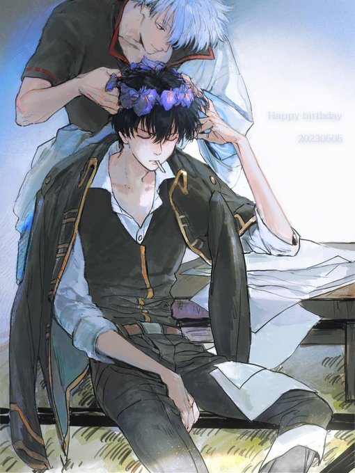 343 1303 土诞第二弹 🌺仅献给你一人的花🌺 ✨20230505 happy birthday✨ 花环的花是立ち野花菖蒲,是土方的生日花 #土方十四郎生誕祭2023 #土方十四郎誕生祭2023 23/05/05 20:43