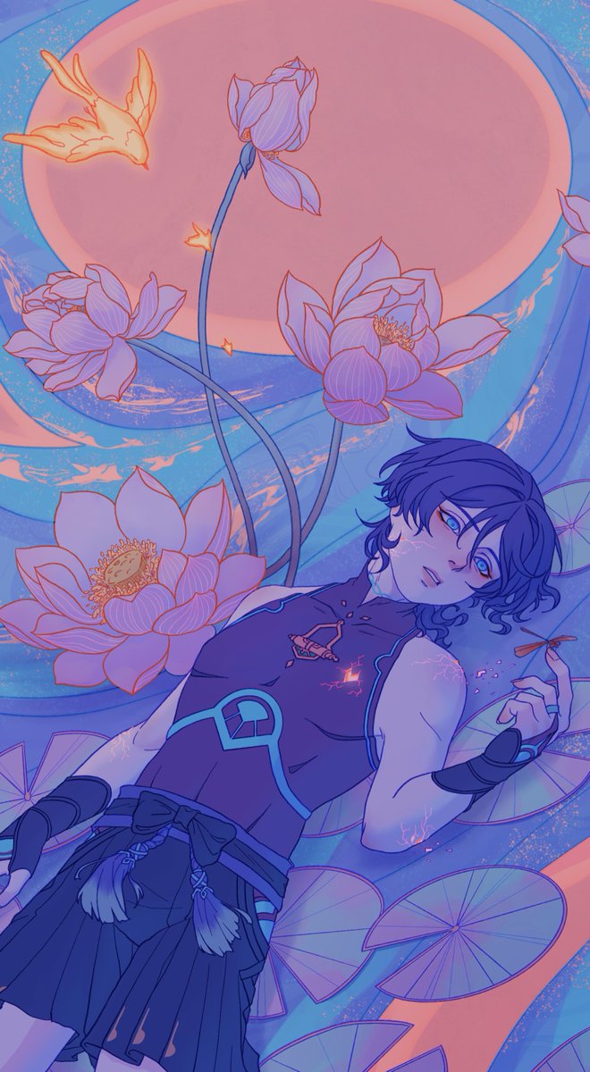 霞幕倾松风 The Curtains’ Melancholic Sway (The flowers are epiphyllums. #genshinimpact #wanderer #scaramouche #genshin