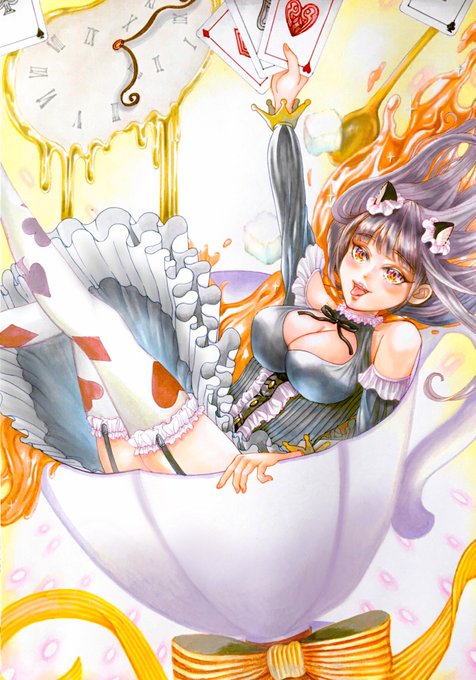 赤の女王♥️と戦えるブラックアリス♠️小さいサイズになってティーカップでひとっ飛び 「ティータイムランデヴー」 #イラスト #illustration #イラスト好きな人と繋がりたい #不思議の国のアリス RT・フォローしていただけたら嬉しいです🙌