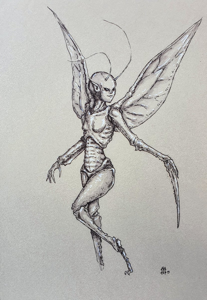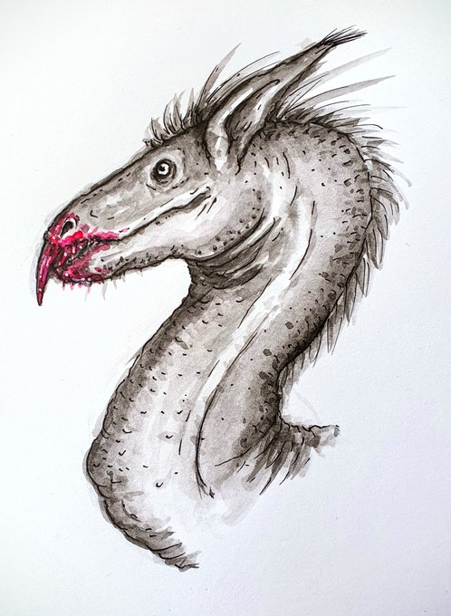 Found some time yesterday to sneak up a quick doodle of a female Shantak bird feeding. Went for a more natural look on this one, as opposed to horror. #inktober2020 #lovecraft