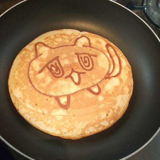 できた! のらショットホットケーキ! クラシックで刺激的なスイーツ爆誕! 炭酸のせいか、やけにフワフワ #紅茶花伝 : 7 #モンエナ : 3 #のらきゃっと #Nora_Cat #ソーデス