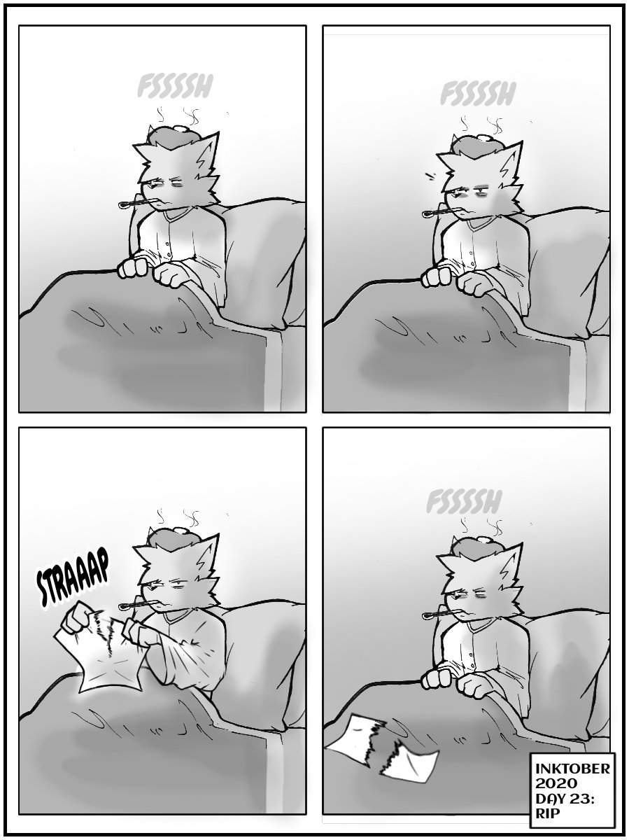 ✏️ #inktober2020 day 23(??) : #rip 💭 Ok, maybe I'm not that sick but I didn't have any good idea...sorry 🚹 Kat 🕒 30min [] TAGS [] #oc #original #cat #badasscat #digital #digitalart #comics #digitalcomic #comicdrawer #funny #funnycomics #funnyfaces #furry #inktober #sick