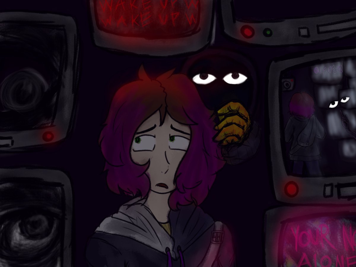TW: eyestrain, Eye contact???, Body Horror (if i need to add more tags please tell) #ranboofanart #ranbooart #generationlossfanart "Keep filming and entertaining the 'people' and you MIGHT get to keep your voice...And your memories if Lady Luck is with you~"