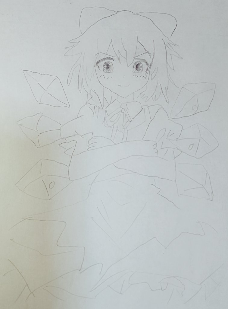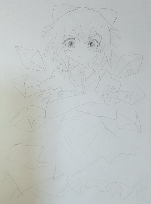 絵描き12日目 色塗りをミスってしまった、、(ノ`Д´)ノ彡┻━┻左目が最悪だぁ 色なしのときのほうが綺麗だったな #イラスト #絵 #東方 #チルノ #絵描きと繋がりたい #絵描きさんフォロバ
