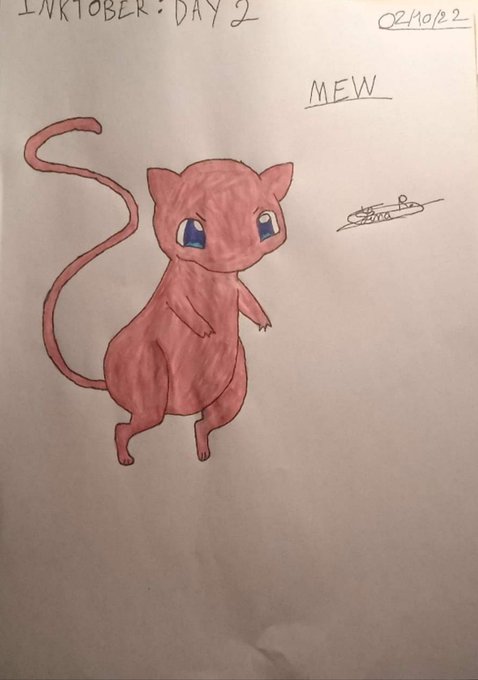 Day 2 : thème choisit un pokémon ducoup j'ai dessiné Mew 💁 #inktober2022 #Day2 #Draw #Drawing #Pokemon #Mew twitter.com/LRosenhart/s…